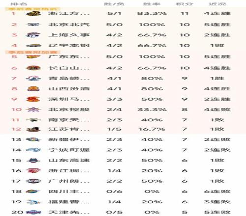北京时间12月26日,CBA常规赛第6轮已经结束了4场比赛,最新积分榜如下!