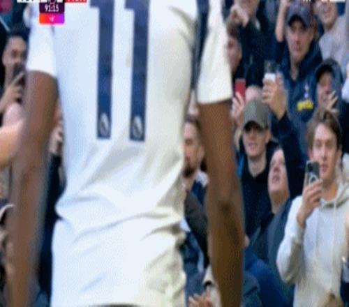 这是热刺的角球,奥多贝尔禁区外劲射,理查利森原地头球一蹭,皮球偏出入网,热刺2-1!
