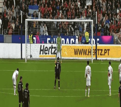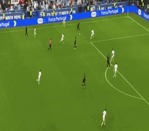 第41分钟,葡萄牙获得前场位置不错的任意球,C罗停赛,若昂·内维斯操刀主罚,皮球滑过一道美妙的弧线,直挂死角。