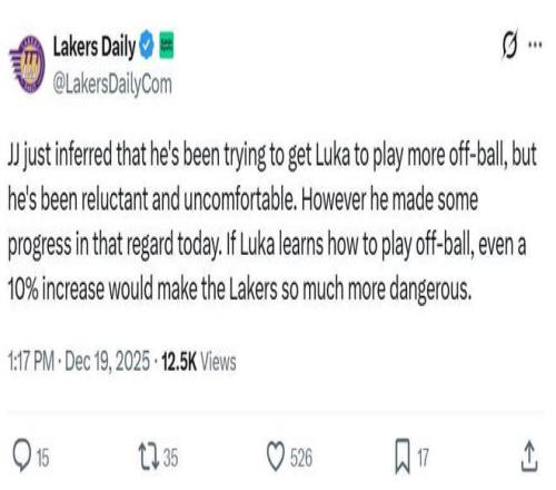 在冲击MVP的同时,东契奇也在为球队做出改变与牺牲,正如湖人自媒体Lakers Daily所说,雷迪克不止一次通过公开采访暗示东契奇要打更多的无球,但后者一直不太情愿,本场他却在这方面做得不错,如果他愿意增加更多的无球跑动,哪怕是10%的提升,湖人的进攻也会更具威胁。