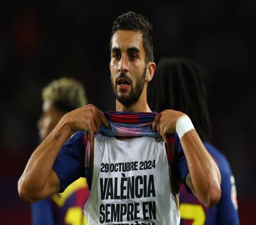 西甲第11轮主场迎战埃尔切的比赛中,费兰-托雷斯的进球帮助巴塞罗那取得2-0的领先。在进球之后,费兰-托雷斯掀起了自己的球衣,并露出了背心正面的印字,上面写着:“2024年10月29日,