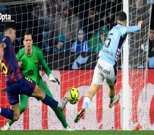 西甲第12轮,巴塞罗那客场对阵塞尔塔,上半场比赛巴萨被对手两度攻破大门,据统计,这是巴萨自2013年3月以来首次连续10场比赛没零封对手。此役客场对阵塞尔塔,什琴斯尼把守的巴萨大